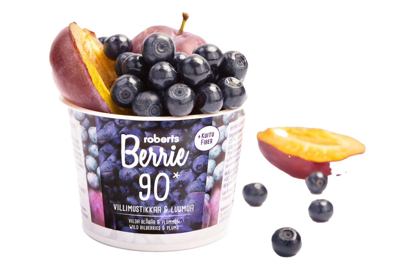 Berrie +Fiber satur savvaļas mellenes, plūmes un bez-glutēna Fibersol-2 šķiedrvielas, kas iegūtas no kukurūzas. Viens Berrie +Fiber 100 ml iepakojums satur 75 veselas mellenes un 7 g šķiedrvielu.